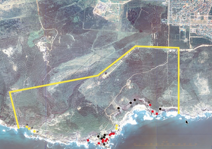 Several of the most significant caves occur in the sea cliffs below the Pinnacle Point golf estate and, several years ago, water seeping into them from the golf course destroyed some of their priceless archaeological assets.
