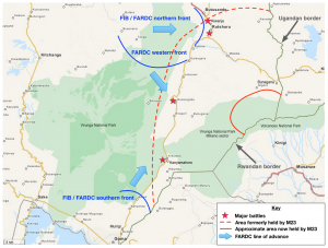 New clashes broke out and the FARDC successively took Kibumba, Kiwanja, Rutshuru, and the military camps of Rumangabo and Bunagana, bordering Uganda and Rwanda. This victory, which appeared unlikely only weeks ago, was achieved by the Congolese army, backed up by the United Nations Force Intervention Brigade (FIB). On African Defense Review, Darren Olivier provides an interesting analysis of the military and logistical aspects of the attack.
