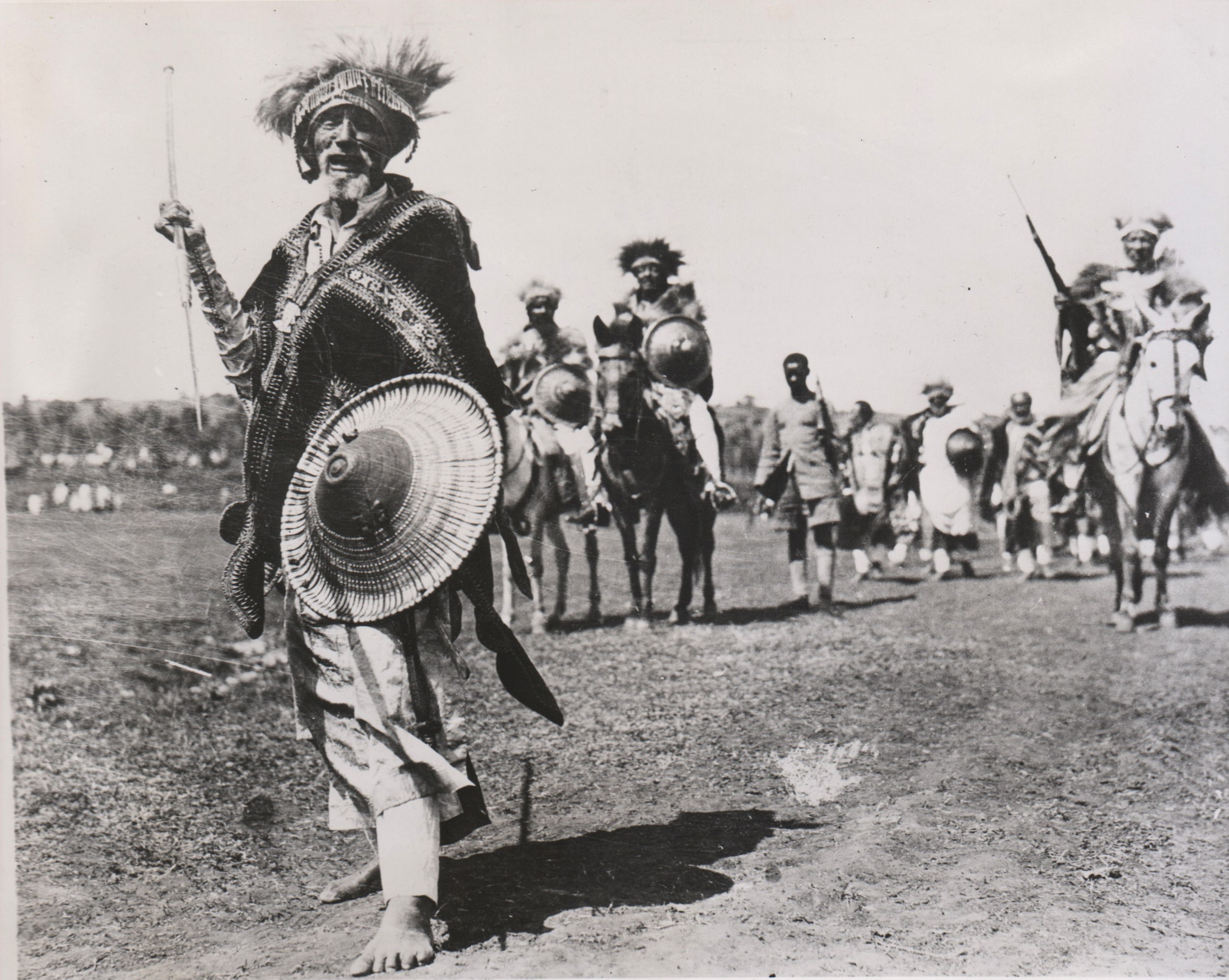 This photograph was taken by H. V. Drees, a photographer with Acme photographs, who was with Ethiopian troops in the South of the country during the invasion of their country by Italy in 1935. He took many photographs which were used extensively by the American press.