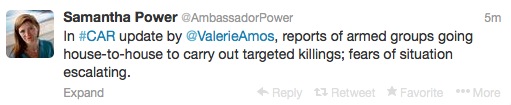 The US ambassador the UN, Samantha Power, posted this tweet, summing up what Amos had said.