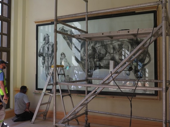 Now they have begun removing art; after some works were burnt by protesters.