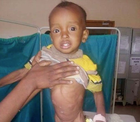 It shows a child suffering from a severe form of malnutrition. The child was also suffering from severe anaemia and was on the verge of death when he arrived at the clinic.