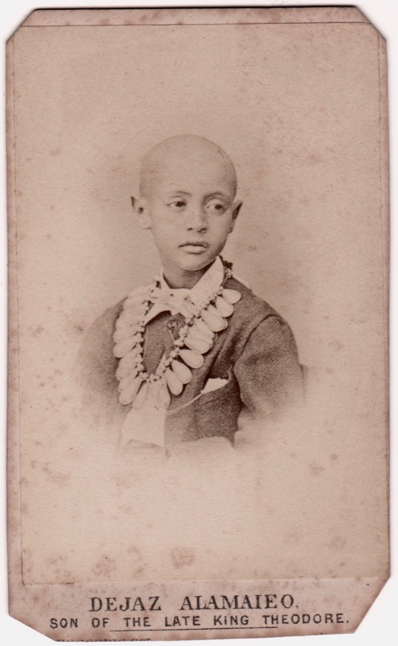 The boy in question was Dejazmatch Alemayehu Tewodros, often referred to as HIH Prince Alemayehu or Alamayou of Ethiopia (23 April 1861 – 14 November 1879) who was the son of Emperor Tewodros II.