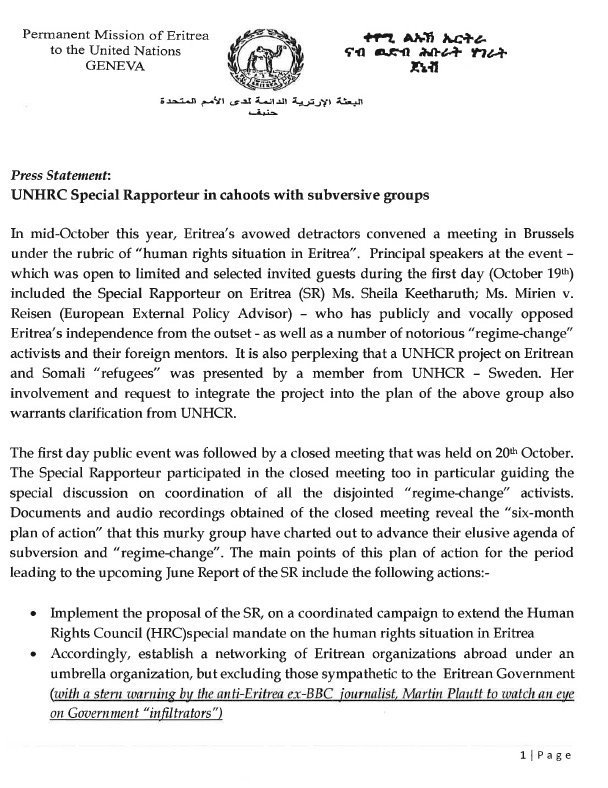 Despite its errors, it speaks for itself and requires little further comment. Sheila Keetharuth is doing an excellent job, which is why a government as repressive as Eritrea’s finds her work so galling.