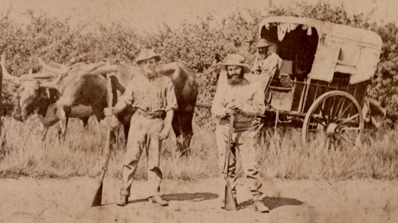 It would suggest that Professor Cohen is standing on the right “on his trek from Berberton to Potchefstreeom across what is now Johannesburg – about 1872.”