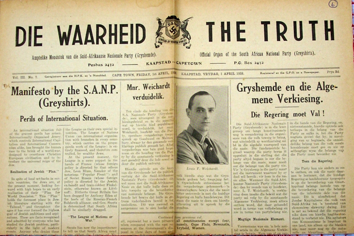 A group of vociferous opponents, among them Jews, Coloureds, communists and trade unionists, heckled Weichardt as he spoke.