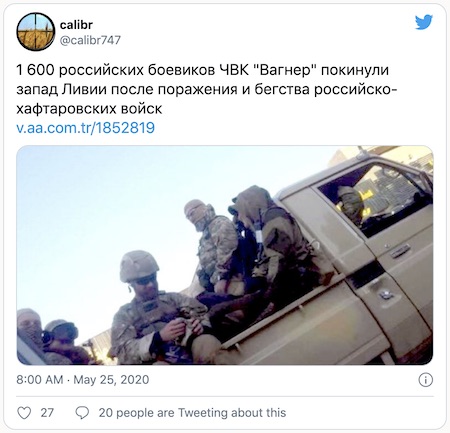 1,600 Russian “Wagner” PMC militants left the west of Libya after the defeat and flight of the Russian-Haftar troops. View original tweet.