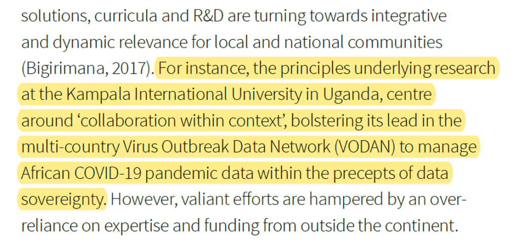 Now the work is recognised and endorsed by the United Nations through its educational and scientific organisation – UNESCO. It has just issued the annual report on Engineering for Sustainable Development in which VODAN-Africa is mentioned as a technical innovation for COVID-19 pandemic data:
