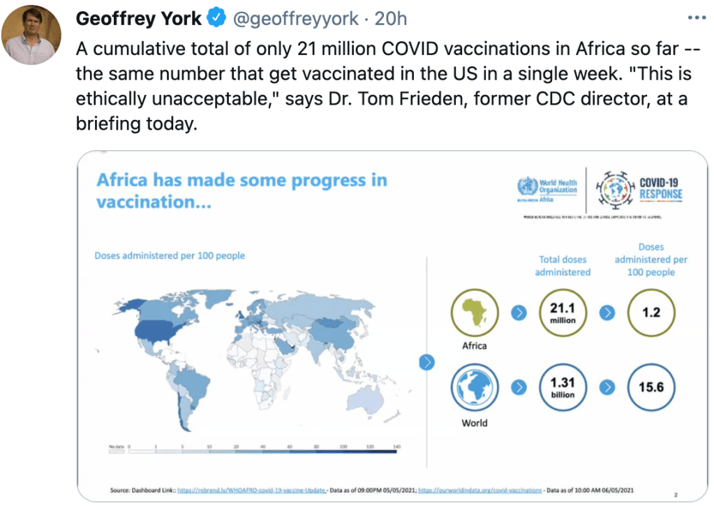 Dr Tom Frieden, former director of the American Centres for Disease Control has complained that Africa has far too few vaccines. And he is right. But there’s another angle to the story.