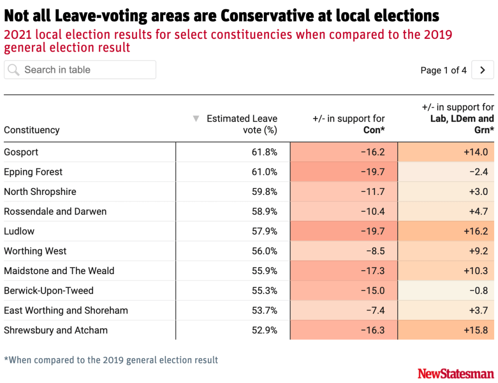 What all these examples reveal is that discontent with incumbent Tories is not the preserve of wealthy Home Counties England, or the blue parts of English Remainia. There are many areas where voters are defecting to alternatives to the Tories – some of which voted Leave and have above-average levels of deprivation.