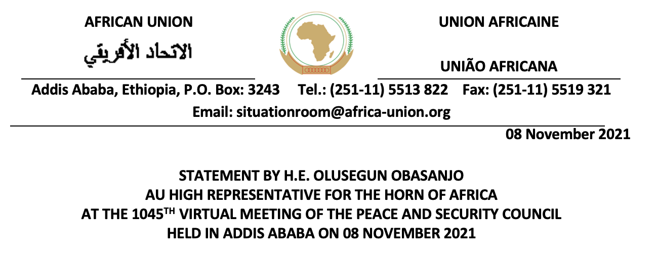 Chair, it is pertinent to point out that the crisis situation in northern Ethiopia has continued to drastically deteriorate in recent weeks, leading to a serious escalation of the situation. I have been following these developments with keen attention, and it is owing to the rapid changes in trend that I am paying another visit here in Ethiopia to engage all stakeholders for the de-escalation of the situation. It should be noted that following days of reports of intense fighting in the north of the country, the Ethiopian cabinet declared on 02 November a nationwide state of emergency with immediate effect, while the central authorities urging the citizens to prepare to defend the capital. The mass demonstration yesterday, 07 November, as well as other similar demonstrations in several cities in support of the federal government is evident of this reality.