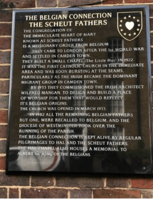 While almost all these refugees returned to Belgium, a small number of Belgian priests stayed, eventually founding the Catholic church in Arlington Road and naming it after a revered shrine in the Belgian town of Halle or Hal. The founders of Our Lady of Hal in Camden Town were members of a Belgian missionary order, the Scheut fathers, which decided as a result of the First World War to move its base to London.