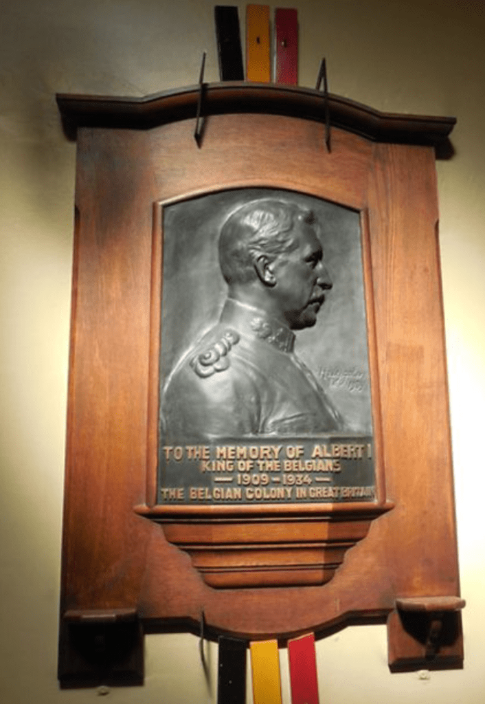 Also in the chapel is a panel bearing a profile of King Albert of the Belgians, the country’s sovereign through the First World War who died in a mountaineering accident in 1934. The work was commissioned in his memory by “the Belgian colony in Great Britain”, though by the time it was finished the country was again caught up in a world war.