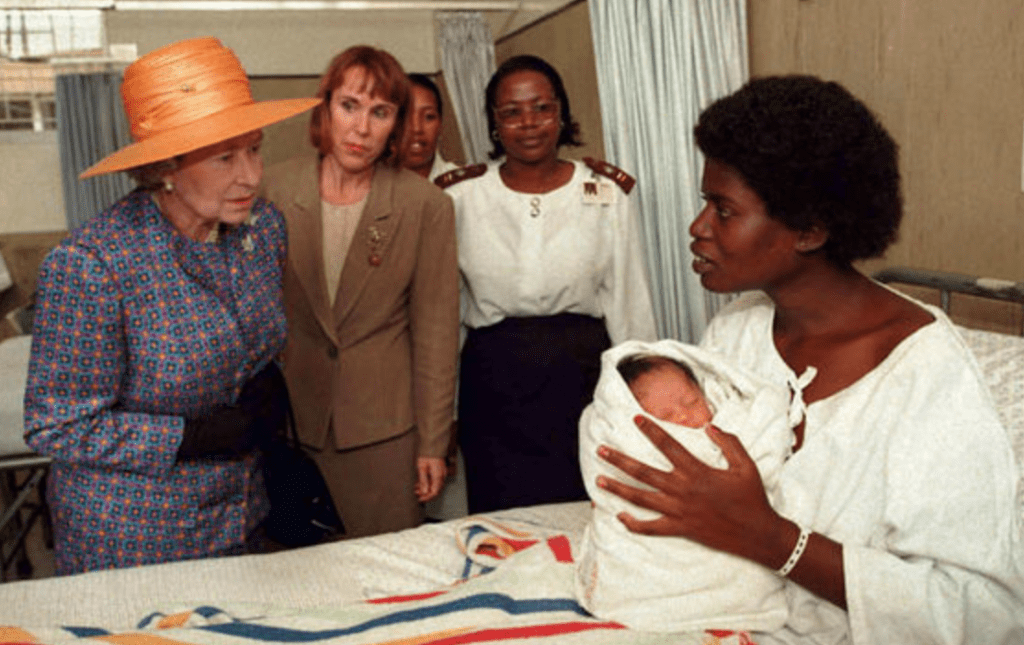 But many of her visits saw the Queen meeting ordinary men and women. In 1995 she did not just see Nelson Mandela and Archbishop Tutu, but this woman at the Baragwanath Hospital, who had just given birth.