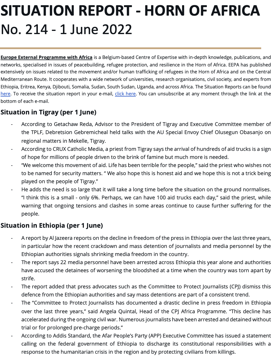 Uncategorized EEPA Situation Report 214 Date: 01/06/2022Author: Martin Plaut 0 Comments Share this: Click to share on X (Opens in new window) X Click to share on Facebook (Opens in new window) Facebook Click to print (Opens in new window) Print Click to email a link to a friend (Opens in new window) Email Click to share on WhatsApp (Opens in new window) WhatsApp Like Loading... Related