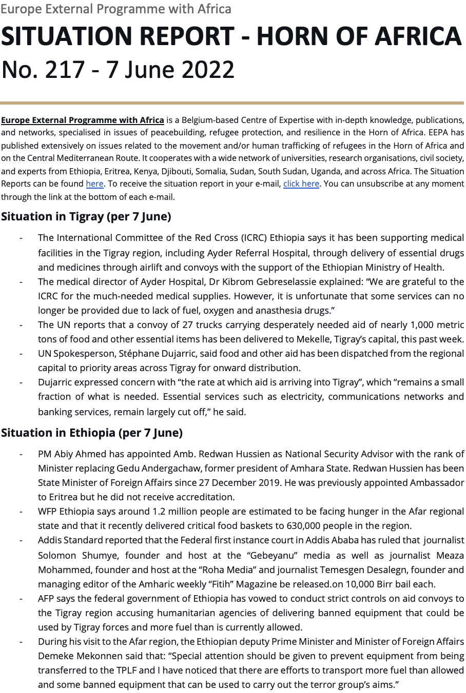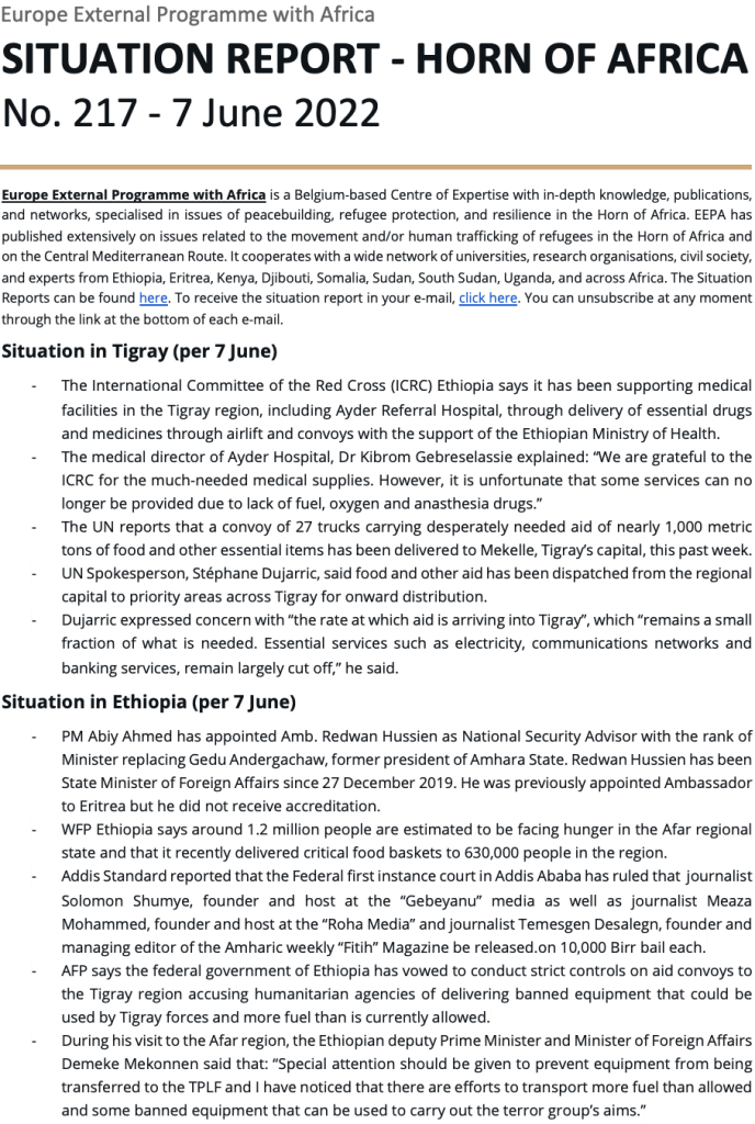 Uncategorized EEPA Situation Report 217 – Horn of Africa Date: 07/06/2022Author: Martin Plaut 0 Comments Share this: Click to share on X (Opens in new window) X Click to share on Facebook (Opens in new window) Facebook Click to print (Opens in new window) Print Click to email a link to a friend (Opens in new window) Email Click to share on WhatsApp (Opens in new window) WhatsApp Like Loading... Related