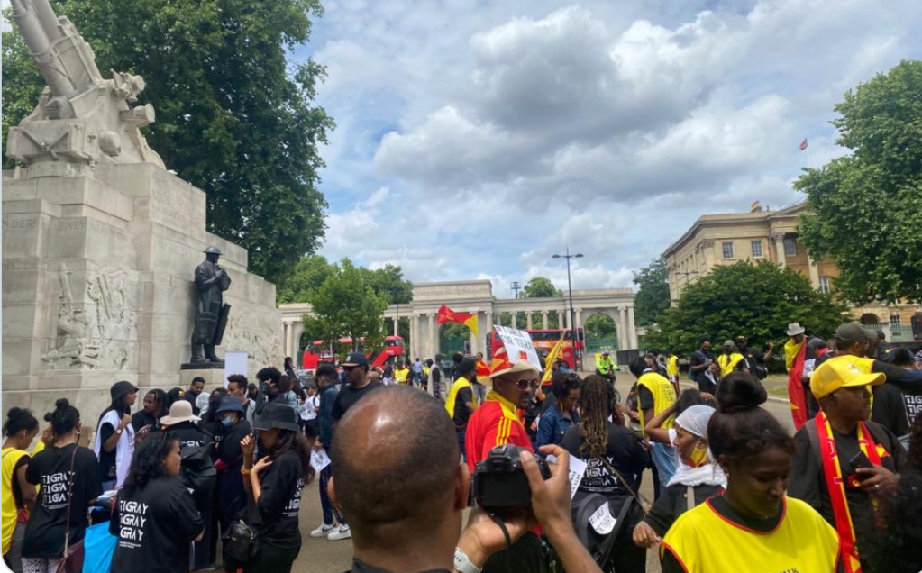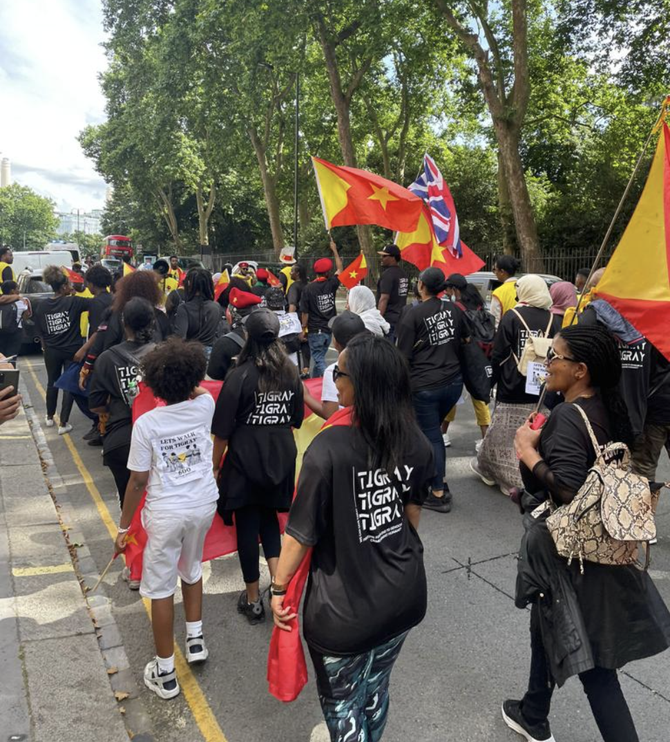 The walk began with an uplifting speech from Sally Keeble urging the Tigrayan community in the UK to continue campaigning for end to the violence and siege on Tigray and ended in Clapham Common Park where a candlelight vigil was held to commemorate Martyrs Day which is marked on June 22nd.