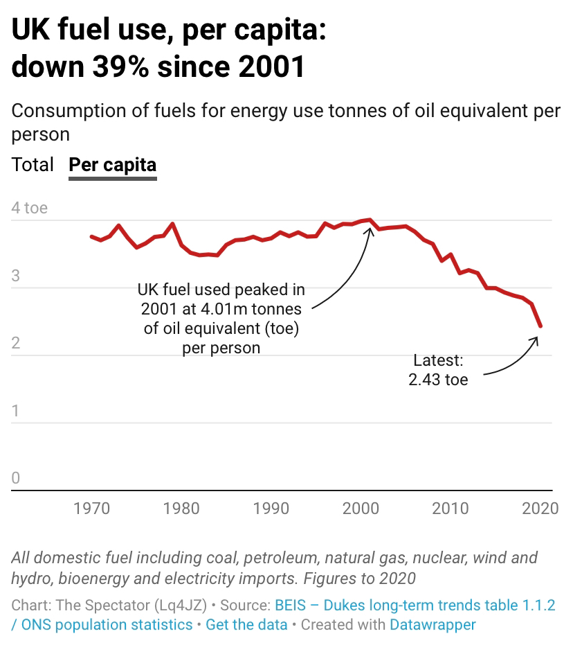 But it is worth pointing out that Britain has made real progress on cutting CO2 emissions and increasing its renewable energy use. More to do, but not negligible!