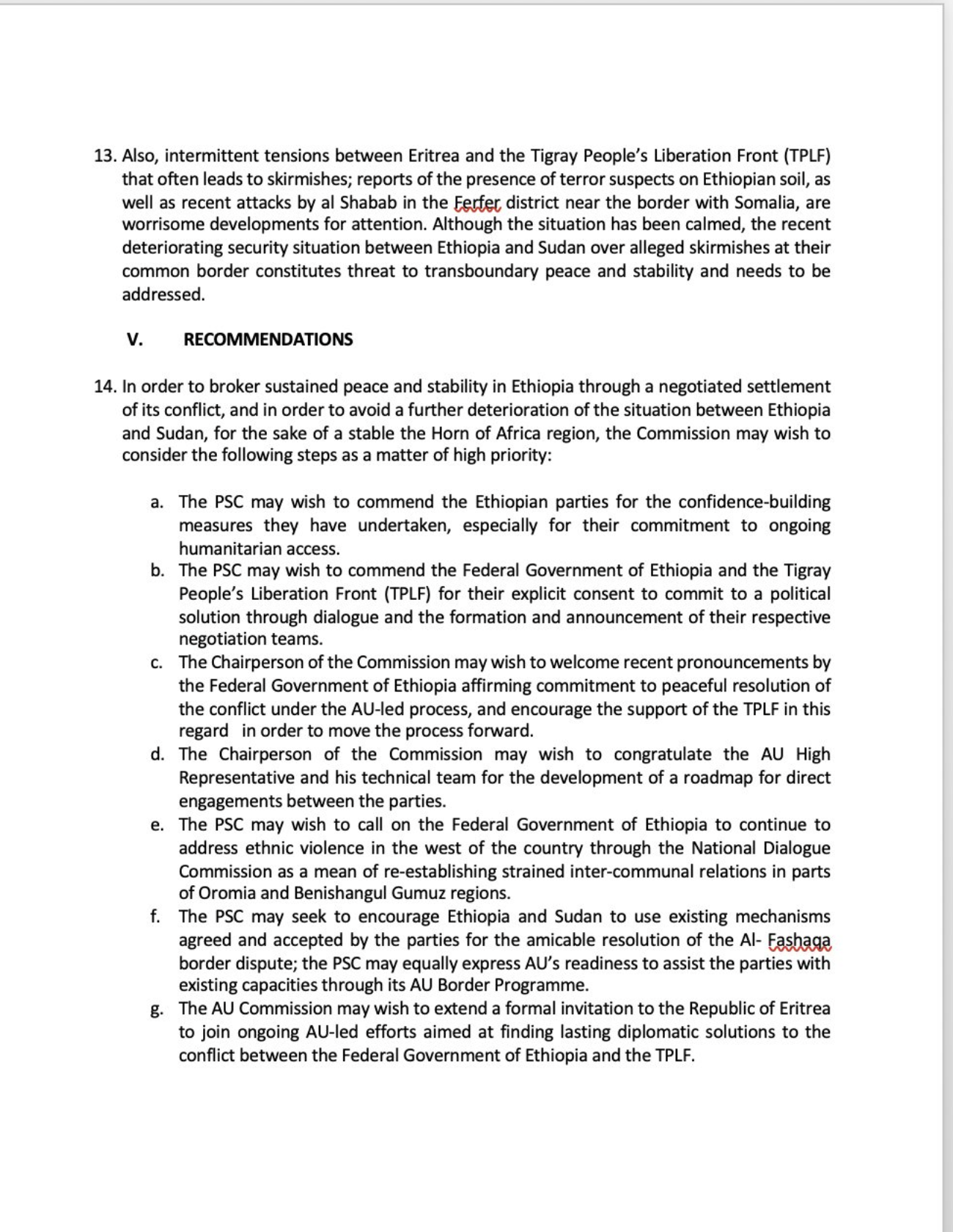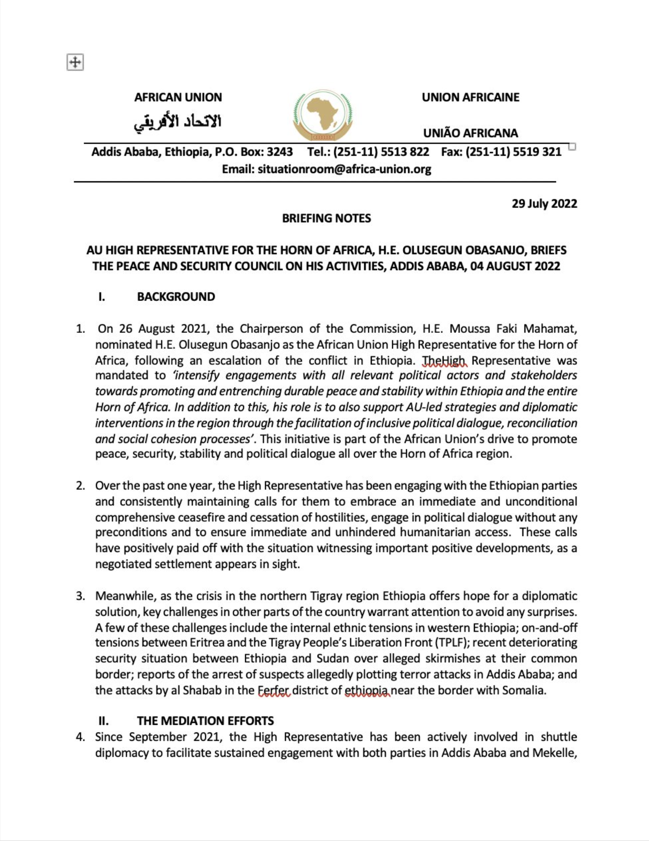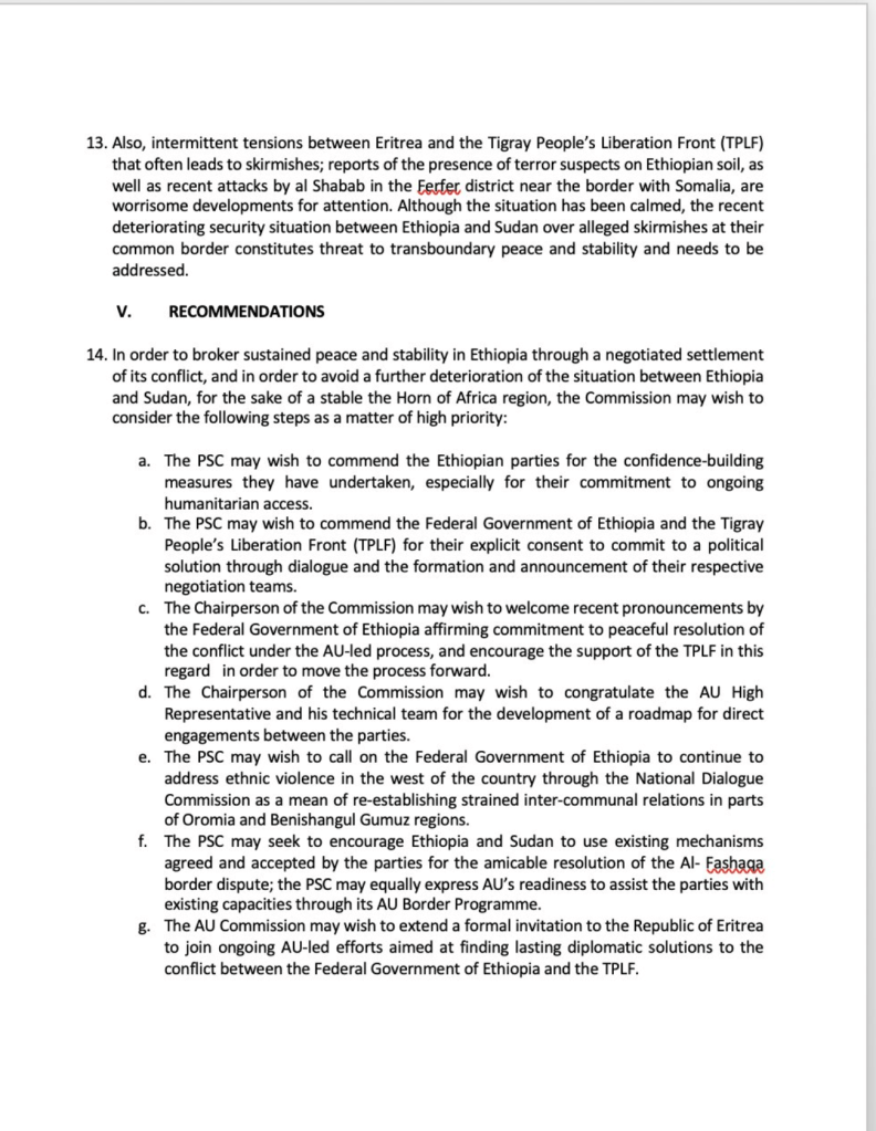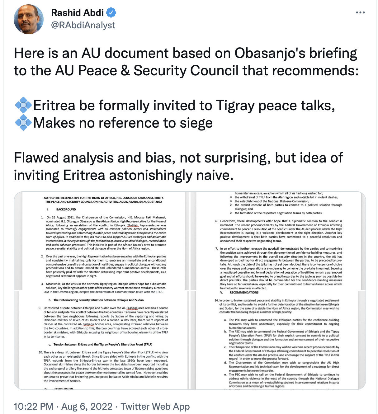 This Tweet by the eminent Horn of Africa analyst, Rashid Abdi, relates to a document he says the African Union mediator put to the Peace and Security Council of the AU in July this year.