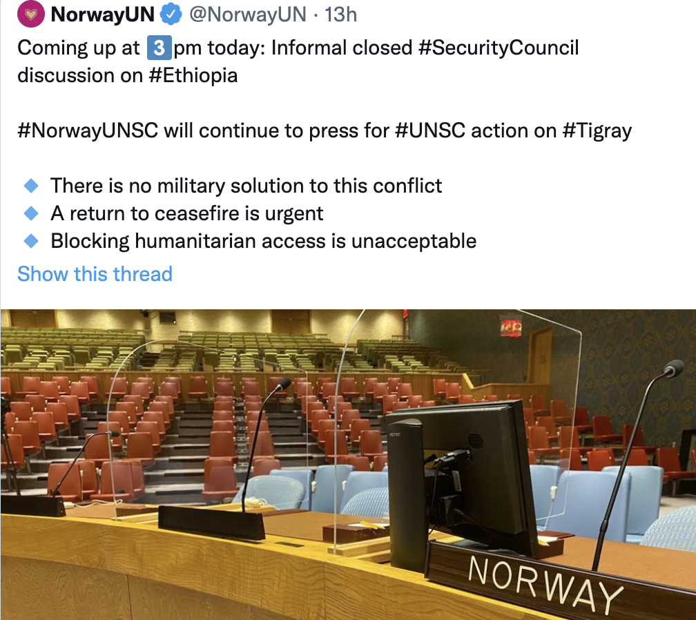 The UN Security Council discussed Ethiopia on Thursday, but it was an “informal interactive dialogue,” meaning it was not on the official UNSC program of work.