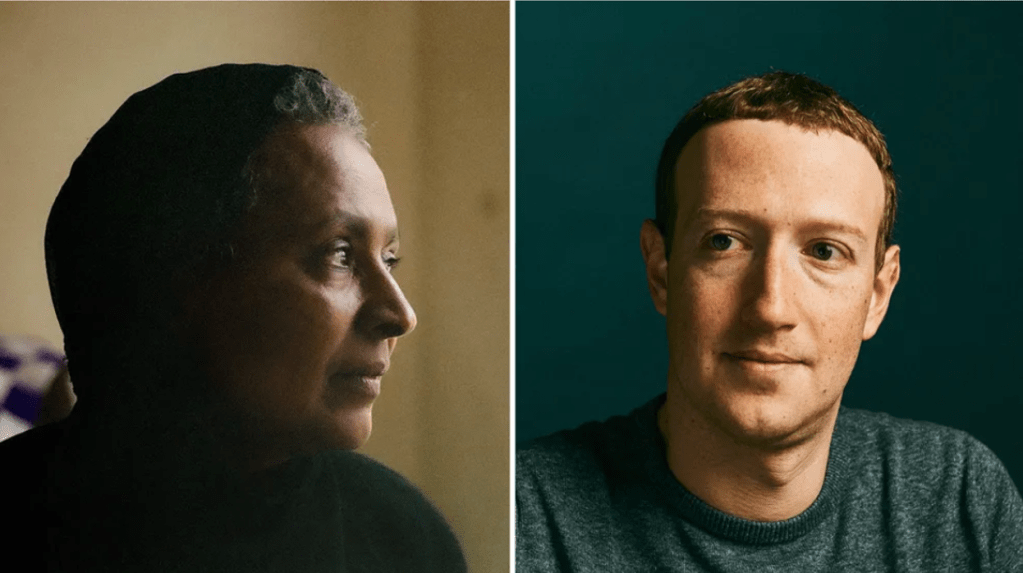 Ethiopian Nigist Hailu mourns the death of her husband; the American Mark Zuckerberg sees the market of the future in Africa. © [M] ZEIT ONLINE; Photos: Jessica Chou/The New York Times/Redux/laif; Kerstin Kohlenberg (left)