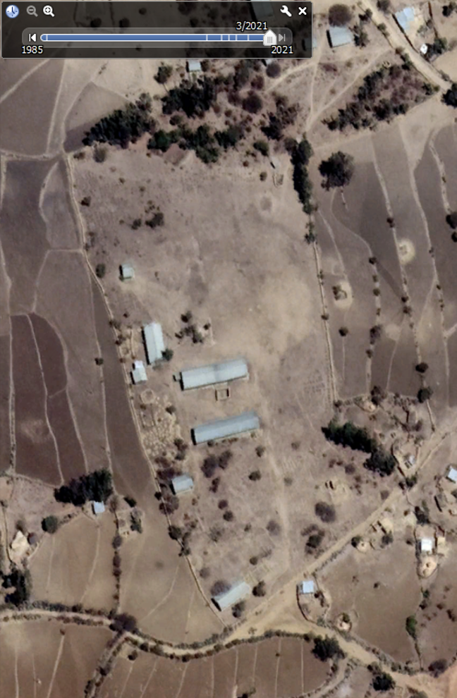 Satellite imagery of Addilal school in March 2021, before the bombardment. Coordinates: 13.69416 °N, 39.32064 °E. © Google Earth.