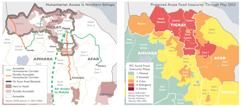 February 15, 2023 & February 22, 2023: Partial area blockade (Central, Eastern, Western & North Western Zone (Eritrean forces), North Western & Western Zone (Amhara forces)