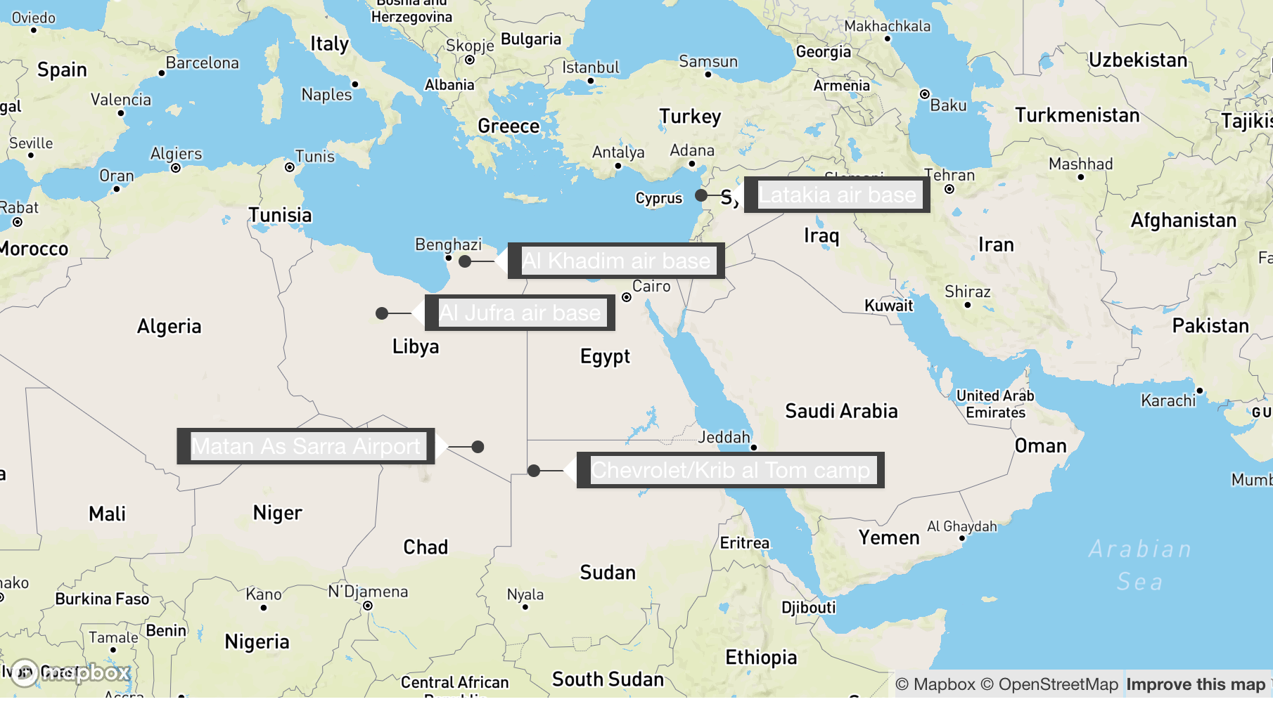The transport plane returned to Latakia on Tuesday before flying back to the Libyan militia airbase of Khadim and then to Jufra, according to Gerjon’s research. That day, Russia airdropped surface-to-air missiles to Dagalo’s militia positions in northwest Sudan, according to regional and Sudanese sources.