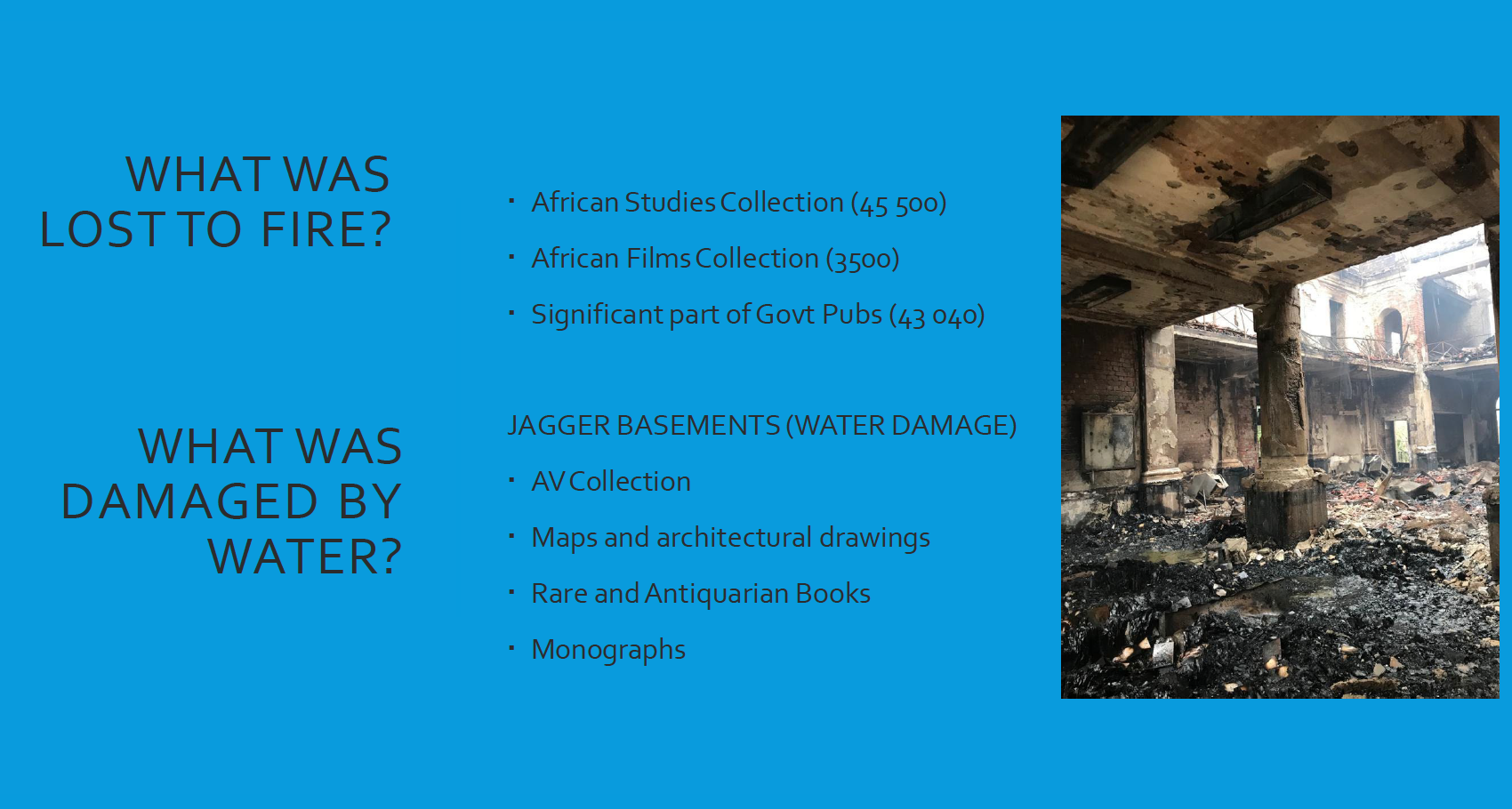 In April 2021 the Jagger library at UCT caught fire – the flames engulfing irreplaceable material stored in the Special Collections archive.