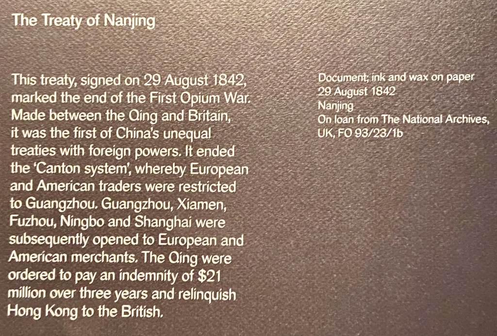 Few events actually change world history, but the Treaty of Nanjing in 1842 really did. It was one of the “unequal treaties” that Britain imposed on the Chinese.