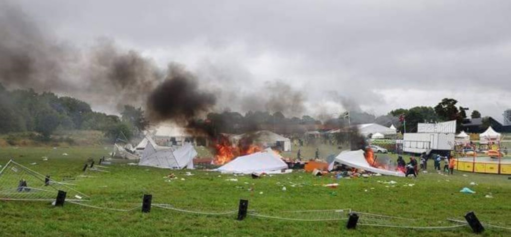 They tore down festival tents, using tent spikes as weapons against police and throwing stones at officers, the paper said.