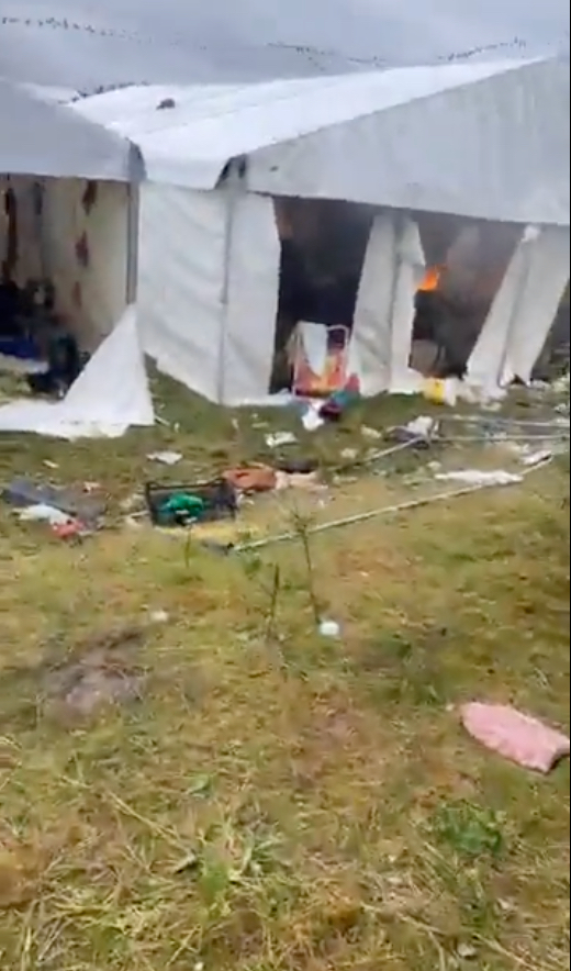 Footage from the scene showed cars and at least one tent on fire, sending large clouds of black smoke into the air.