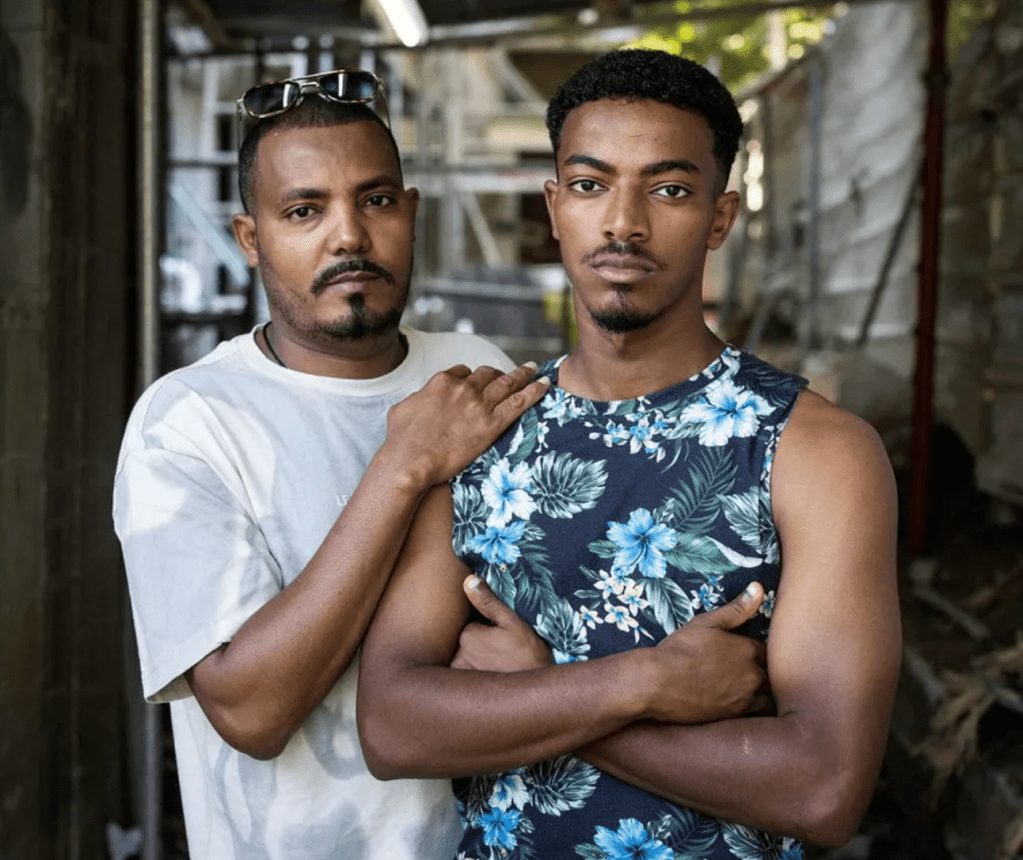 Asrat Tekie and his son, Milyardo Asrat. “You don’t know what it’s like to apply for a visa and be scorned and humiliated,” the father says.Credit: Hadas ParushItay Goder