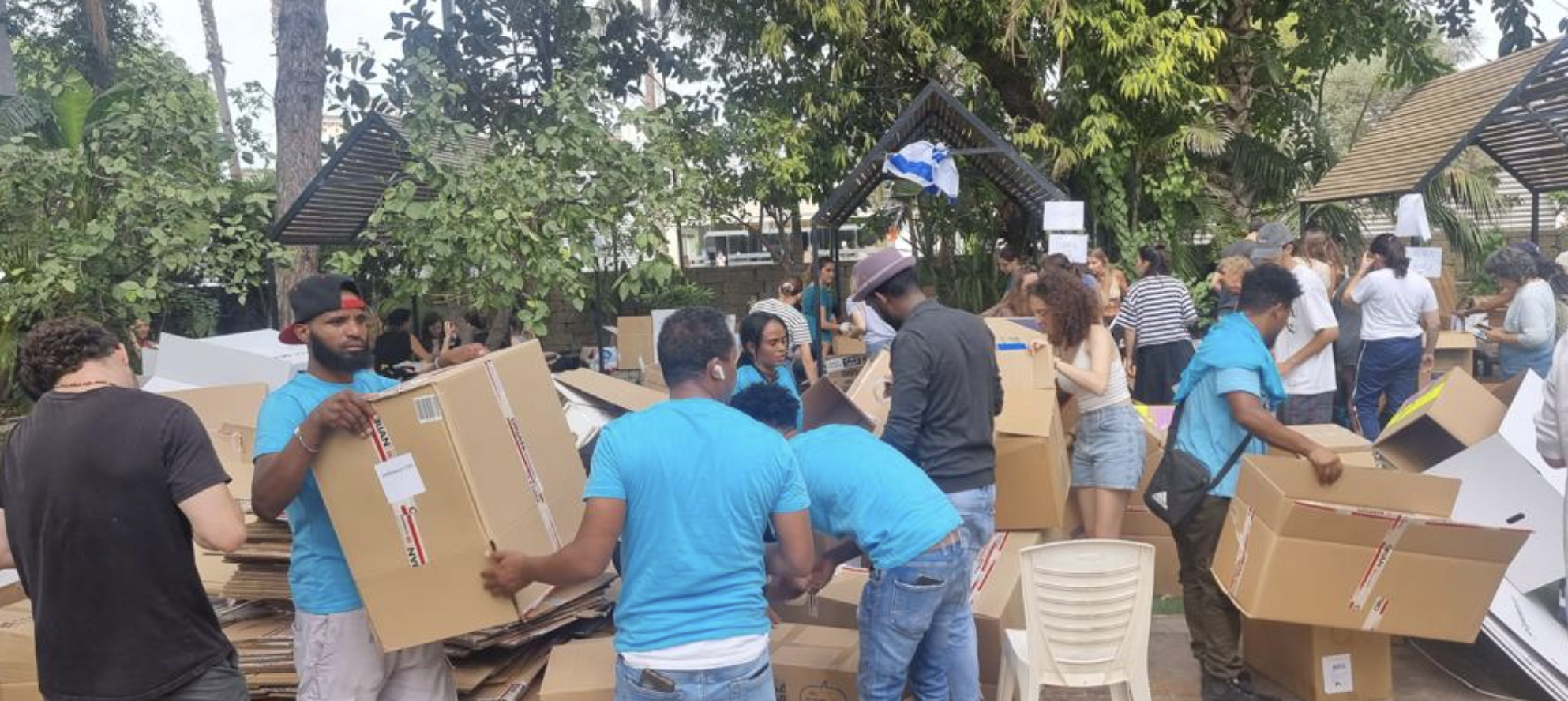Today, according to Berhani, 165 people from three different cities arrived at the expo: Ashdod, Ashkelon and Netanya, in order to allow the volunteers from Tel Aviv who worked all day yesterday to rest. They plan to continue the initiative until the end of the war, he says, when each time Eritreans from different cities will come to volunteer in Tel Aviv and Petah Tikva.