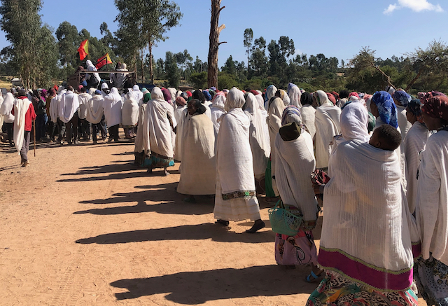 In one day’s drive out of Mekelle we must have passed three or four of these ceremonies. They were huge: many thousands of people. As we drove we would begin to see small groups of white scarfed people, then more groups and bigger groups all walking gradually both sides of the dusty road would be crowded by these groups and finally the road would be blocked by silent crowds of mourners many crying.