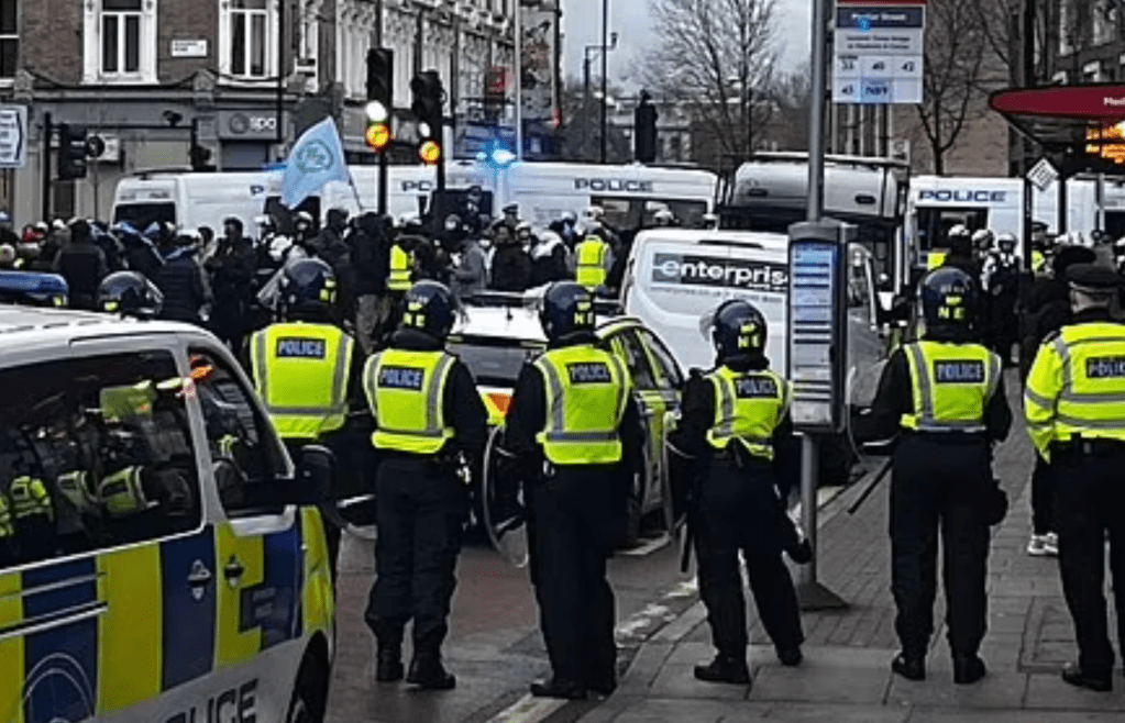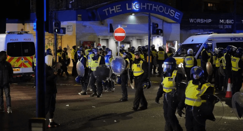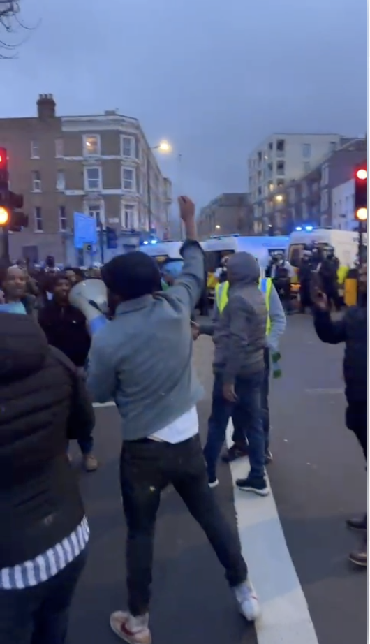 “There were clashes in Camberwell after a protest related to ‘tensions in the Eritrean community’, the force added. Footage of the incident seemed to show people wielding sticks clashing with officers, bringing traffic to a halt. About 50 people gathered outside a private venue before violence broke out, police said. A heavy police presence was still in place at the scene, near The Lighthouse Theatre, on Saturday evening.”