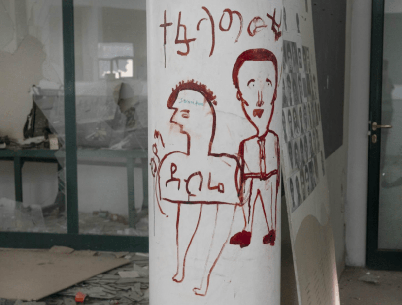 ‘Look,’ says Rezene. He points to slogans painted on walls and columns, caustic texts mocking Tigreans and leaders of the TPLF. ‘This destruction is part of a campaign by the Ethiopian elite to wipe the Tigreans off the map,’ Rezene believes.