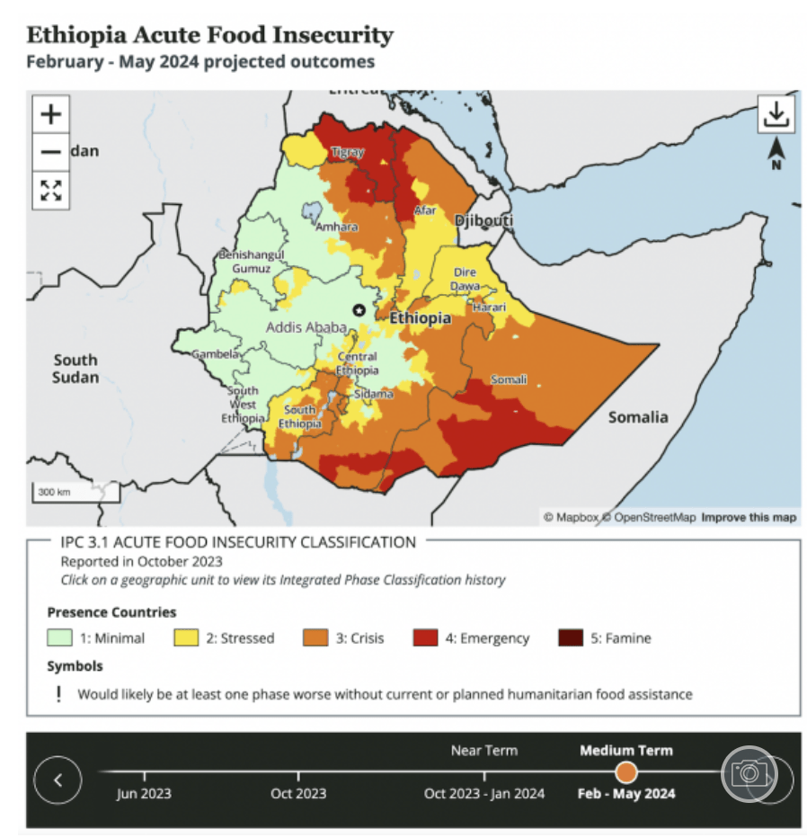The international food monitoring system, IPC, expects much of Tigray to be in phase 4 by the first half of 2024. This is the second most severe level of food insecurity, after famine (phase 5). In phase 4, there is acute malnutrition and excess mortality, and people have to resort to emergency strategies to cope with food shortages.