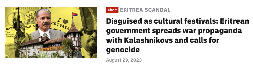 ERITREA SCANDALDisguised as cultural festivals: Eritrean government spreads war propaganda with Kalashnikovs and calls for genocide