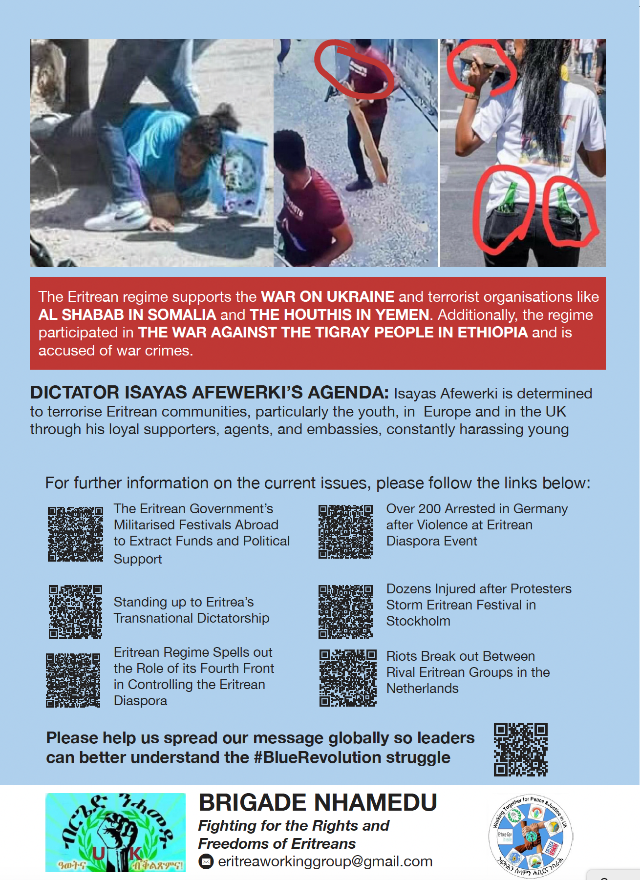 Africa, Britain, Eritrea, Horn of Africa Eritreans call for a pro-regime London ‘carnival’ on 18 May to be banned Date: 15/05/2024Author: Martin Plaut 0 Comments Share this: Click to share on X (Opens in new window) X Click to share on Facebook (Opens in new window) Facebook Click to print (Opens in new window) Print Click to email a link to a friend (Opens in new window) Email Click to share on WhatsApp (Opens in new window) WhatsApp Like Loading... Related