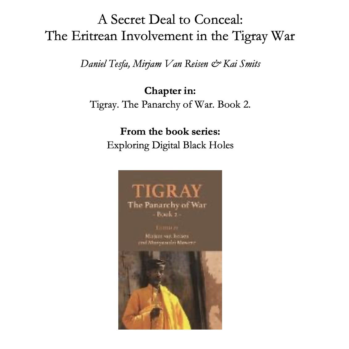 The chapter explored the secret lead-up to the 2018 Peace Agreement between Eritrea and Ethiopia in 2017 and 2018, revealing a disinformation campaign that used the peace process as a cover for preparations for war against Tigray. The collaboration between Eritrea and Ethiopia was concealed, allowing Eritrea to commit atrocities in Tigray with impunity. Eritrea’s active presence was only officially acknowledged on 23 March 2021, when Prime Minister Abiy thanked President Isayas for the Eritrean involvement and battlefield support to the war.