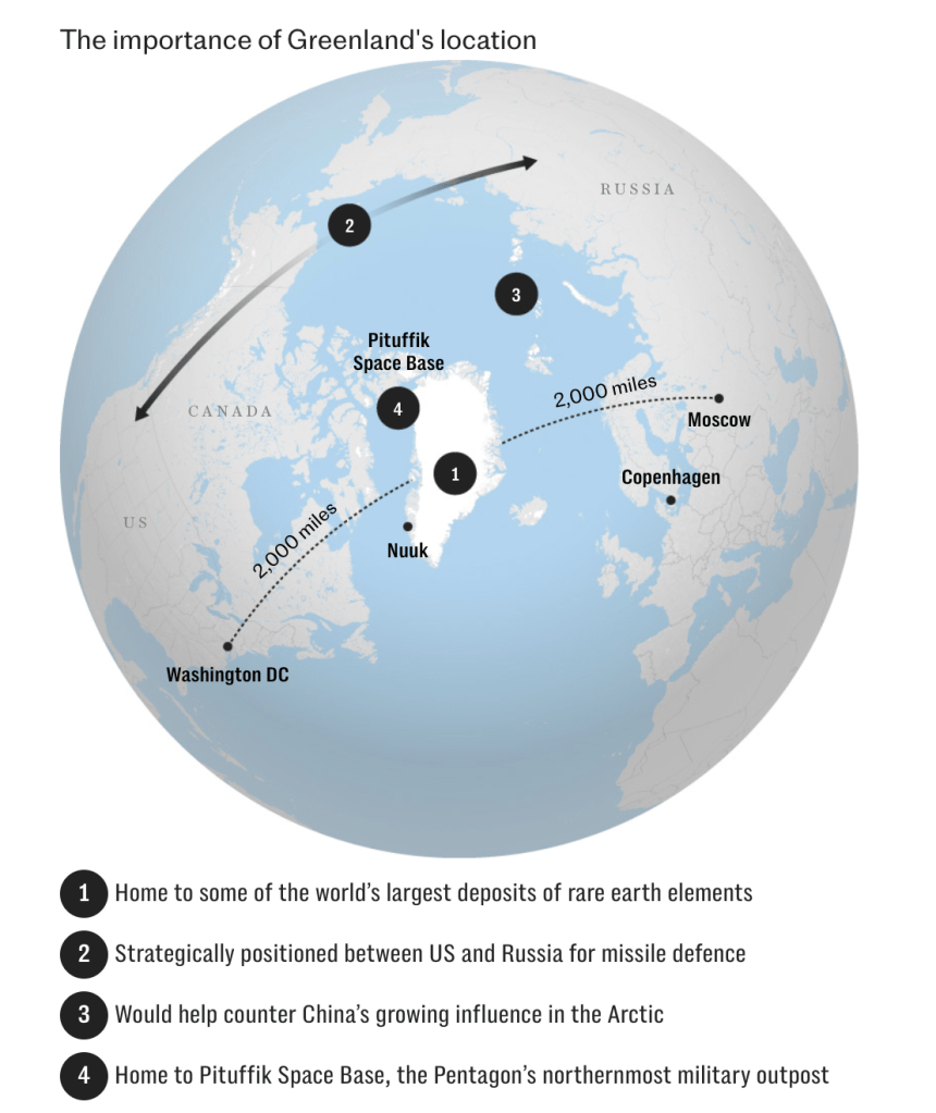 He has cited concerns that Moscow or Beijing will seize the island if he does not, insisting that “we’re not going to have Russia or China as a neighbour”.