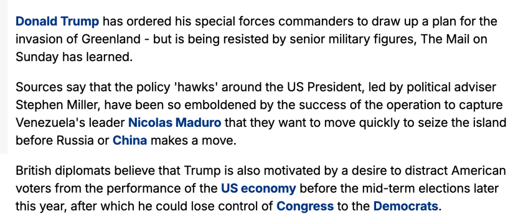 He has also not ruled out using military force to take the island, insisting that “we are going to do something on Greenland whether they like it or not”.