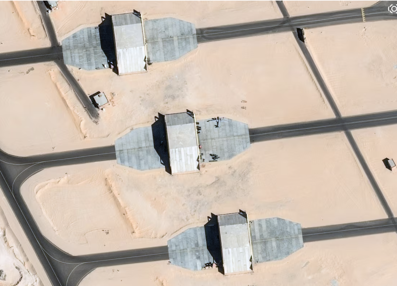 Satellite images from Vantor, a U.S. space technology firm, show a large drone on the apron of one of the airports, in East Oweinat, on September 29, December 28 and January 9.