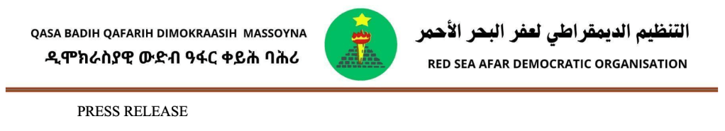 We, the RED SEA AFAR DEMOCRATIC ORGANIZATION, hereby express our appreciation for the attention of the African Commission on Human and Peoples’ Rights to the violations and forms of persecution endured by the Red Sea Afar people in Eritrea, particularly its consideration of the complaint submitted by our organization against the Eritrean regime concerning the systematic ethnic persecution taking place in the Red Sea region.