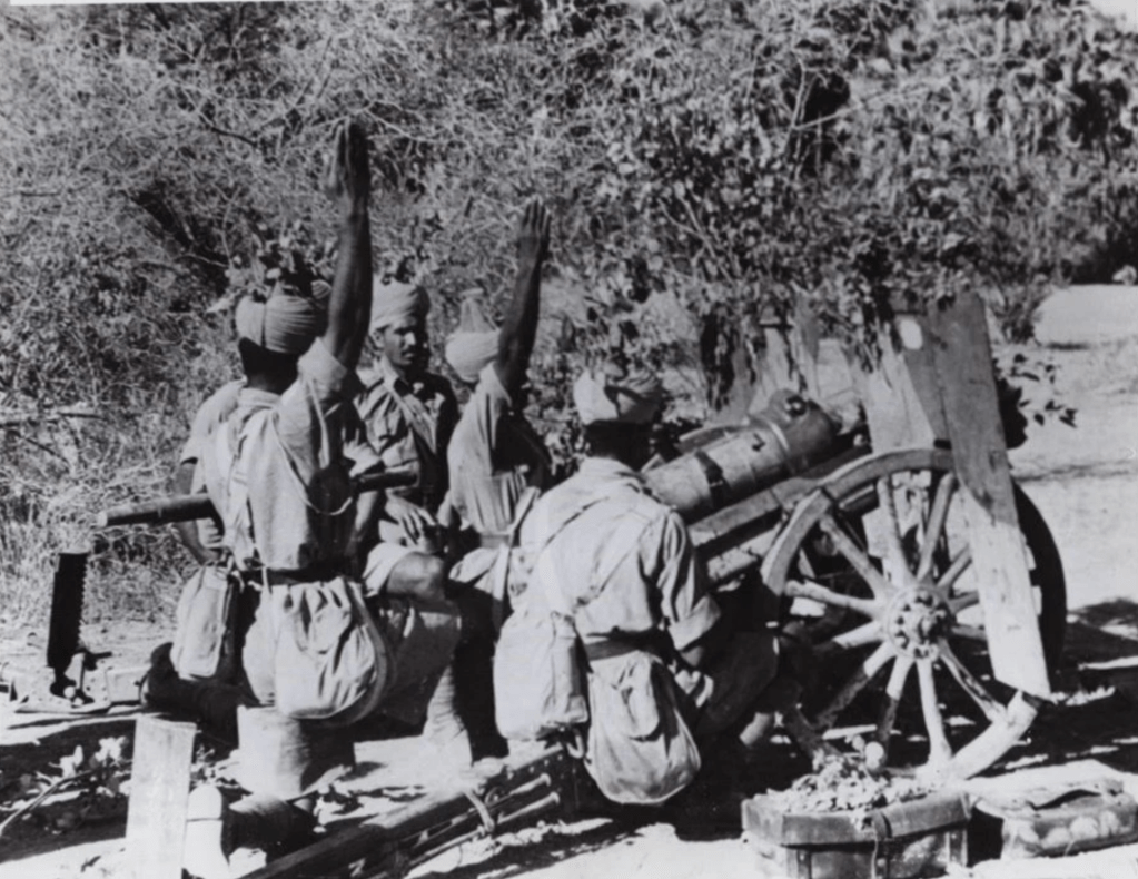 This shows Indian Sikhs manning a 3.7 inch Mountain Howitzer Artillery as the British led troops liberated the Eritrean port of Massawa, 9th April 1941.